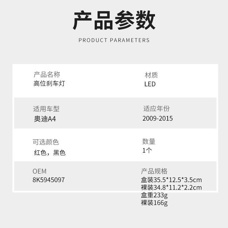 Feu Stop Central LED pour Audi A4 2009-2015 B8, Feu Arrière d'Avertissement de Freinage Rouge Noir M090