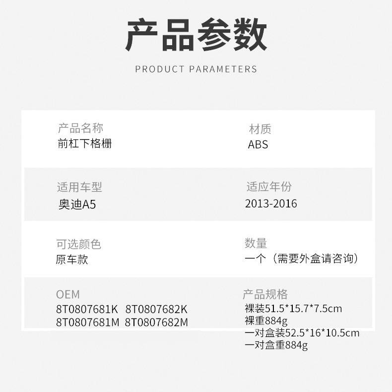 Calandre de pare-chocs avant Audi A5 avec enjoliveur de feux antibrouillard en plastique ABS, pièce de modification 2013-2016 D100 D101