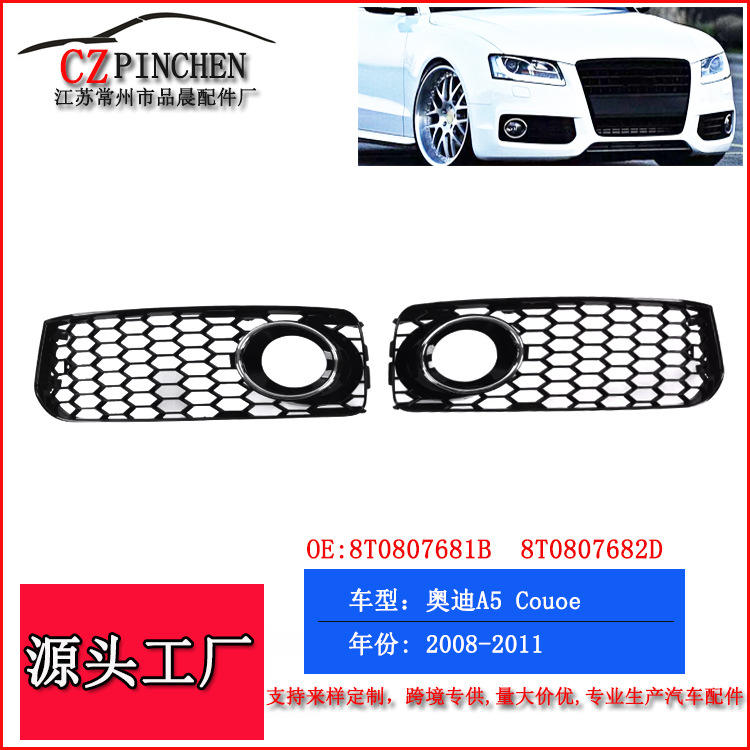 Audi A5 S5 2008-2012 Grille inférieure de pare-chocs avant avec enjoliveur de phare antibrouillard en ABS noir