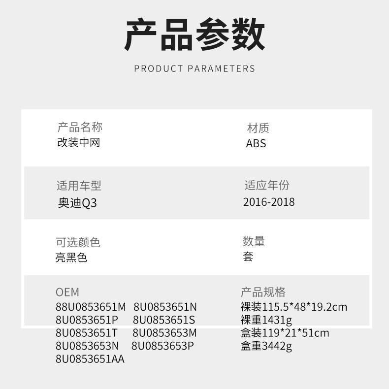 Grille de pare-chocs avant en nid d'abeille de style RS pour Audi Q3 2016-2018, pièce de rechange en plastique ABS