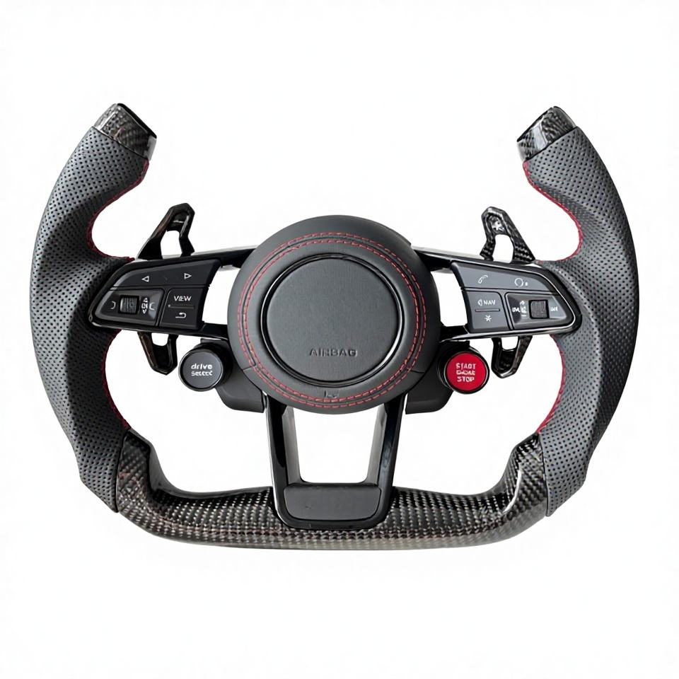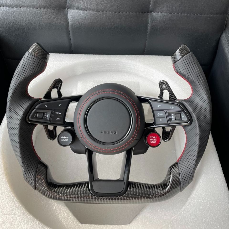 Volant de voiture sport en fibre de carbone pour Audi R8 TT Mk2/Mk3 B8 RS TTS TTRS RS3-7 A3-A8 Q3-Q7, forme D, 4/3 branches, en cuir