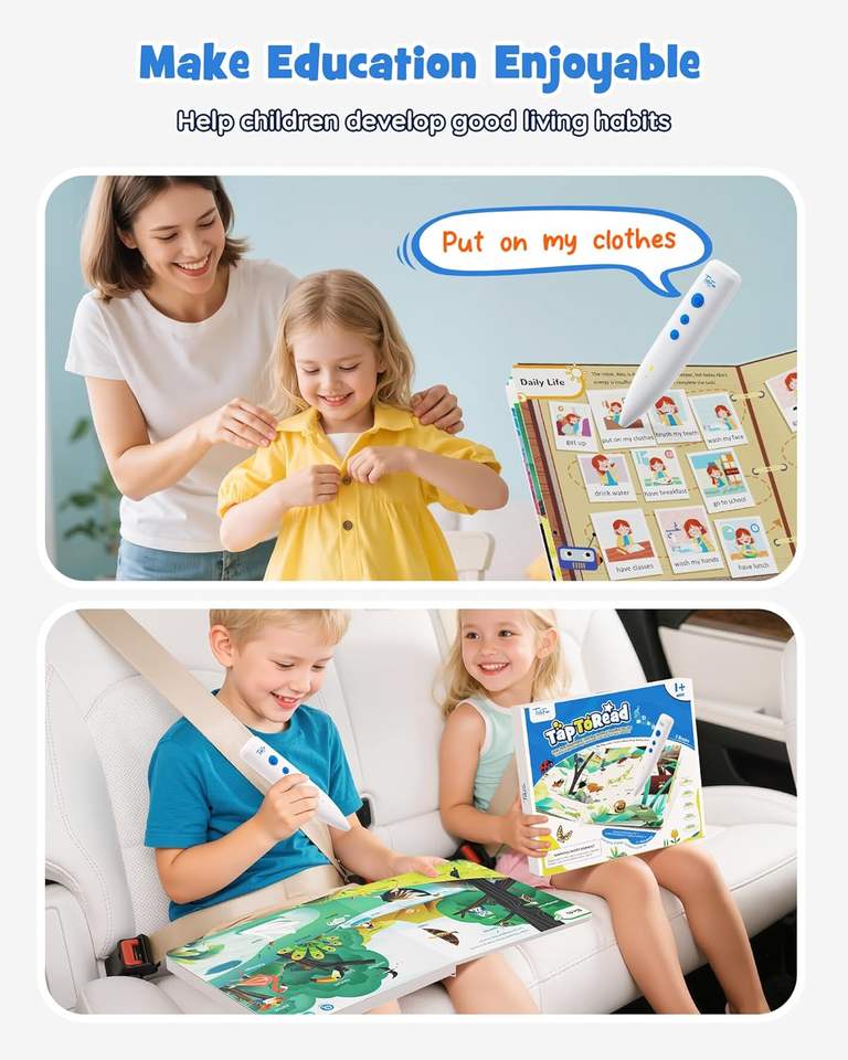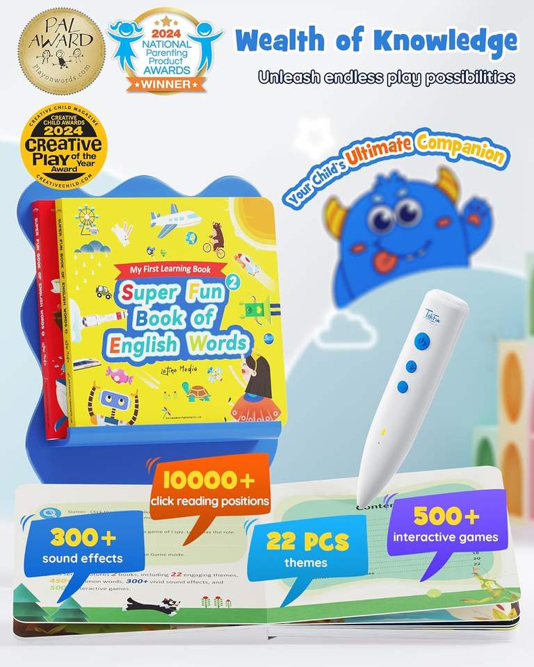 Livre audio interactif : Stylo parlant éducatif, jouets sensoriels pour l'autisme, plus de 500 activités d'apprentissage, livres illustrés en anglais pour tout-petits garçons et filles