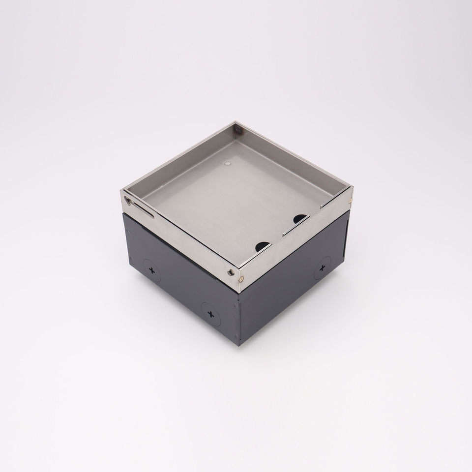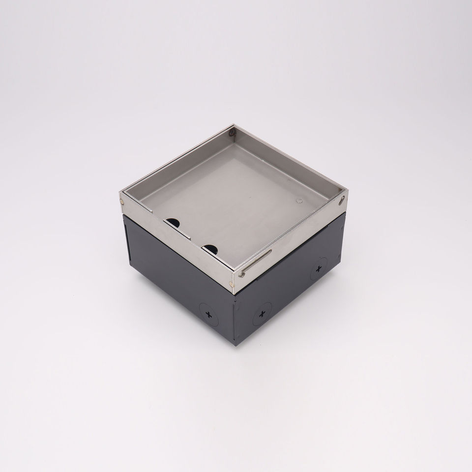 Boîte de sol pour conférence audiovisuelle avec connexions XLR, multimédia et prises de courant
