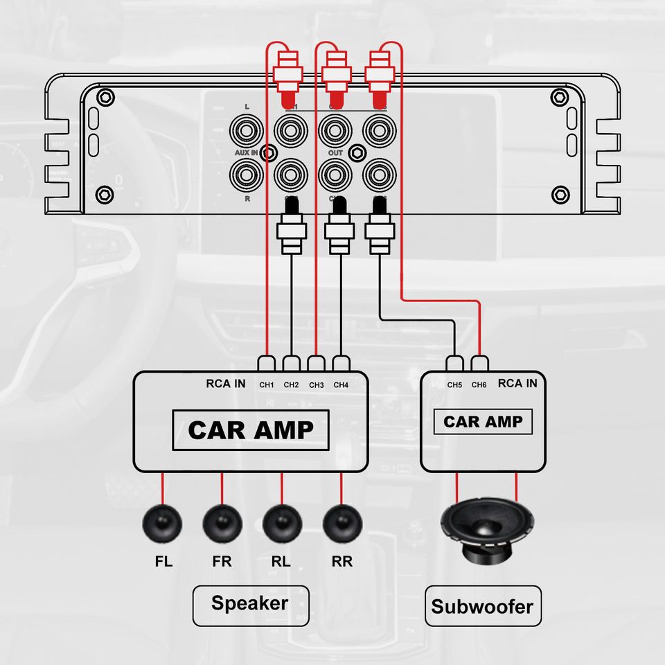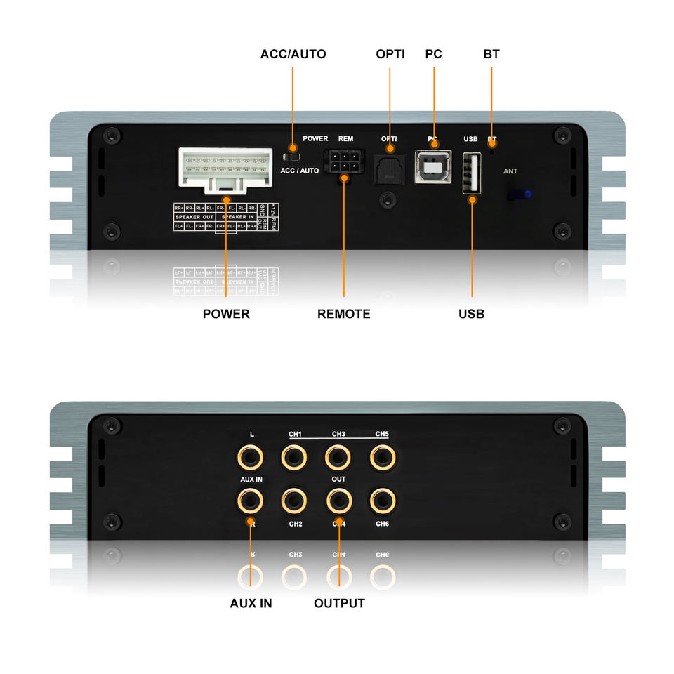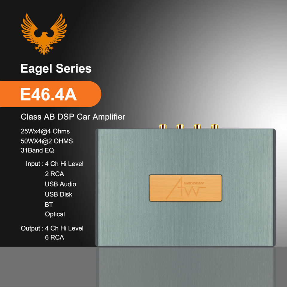 AudioWinner E46.4A Amplificateurs stéréo de voiture de classe AB à 6 canaux Processeur audio 4 DSP Égaliseurs en aluminium à 6 canaux Crossovers