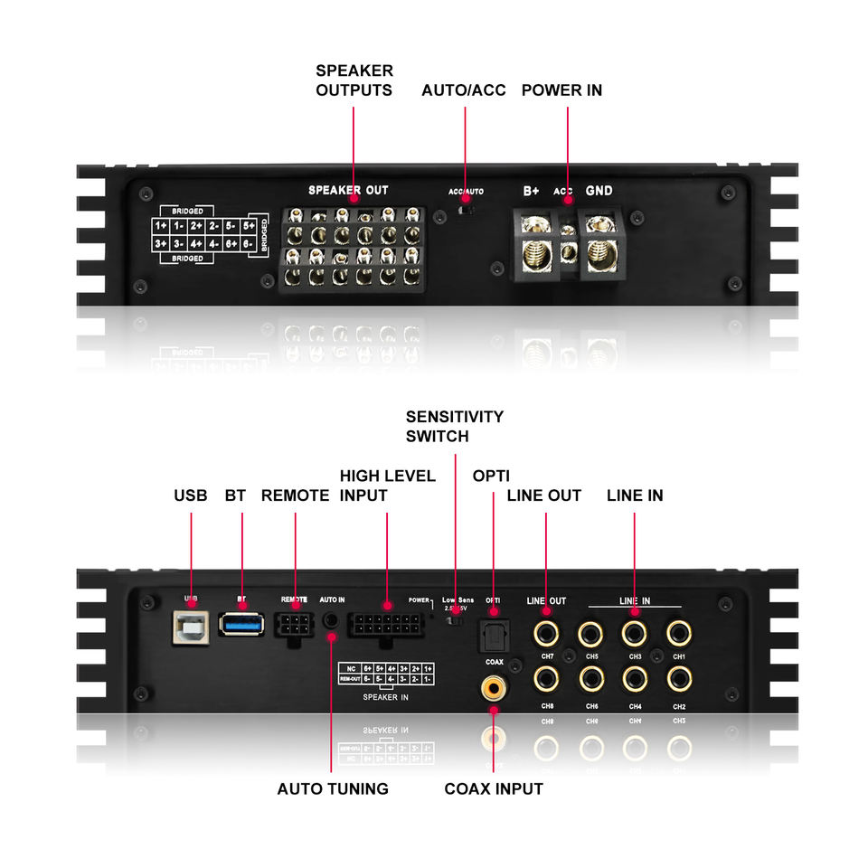 AudioWinner T68.6D Amplificateur audio pour voiture Processeur DSP de haute qualité classe D avec égaliseurs intégrés DSP bluetooth voiture