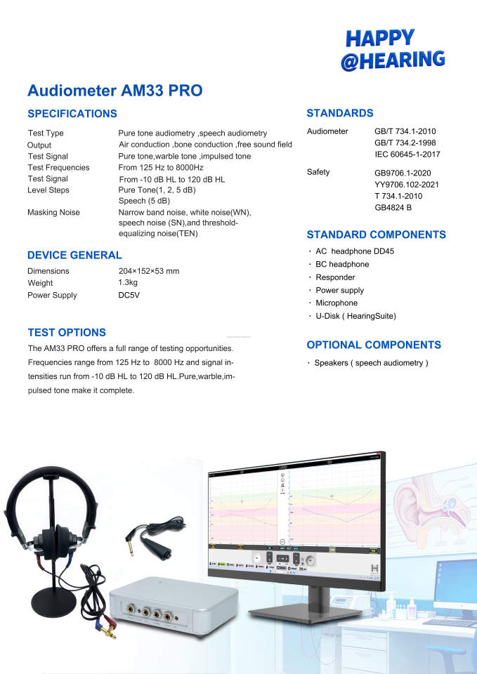 Audiomètre AM33 PRO portable pour diagnostic, audiomètre à tonalité pure, audiometrie vocale, centre d'audiométrie, test auditif clinique, audiomètre AM33 PRO