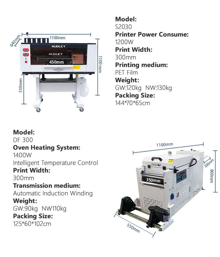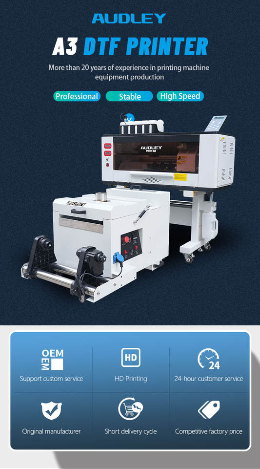 Machine d'Impression Vêtements Numérique DTF A3 30cm Populaire CE Pas Chère XP600 I3200 DTG Audley pour T-shirts, avec Four de Séchage