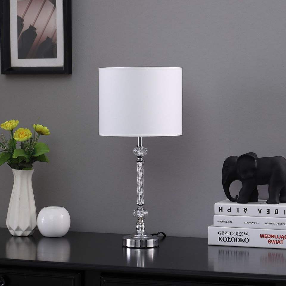 Lampe de table moderne argentée Audrey 19.25 DB avec design en cristal torsadé