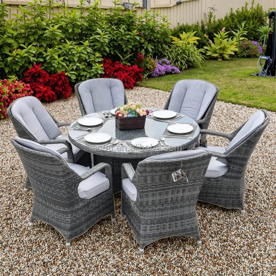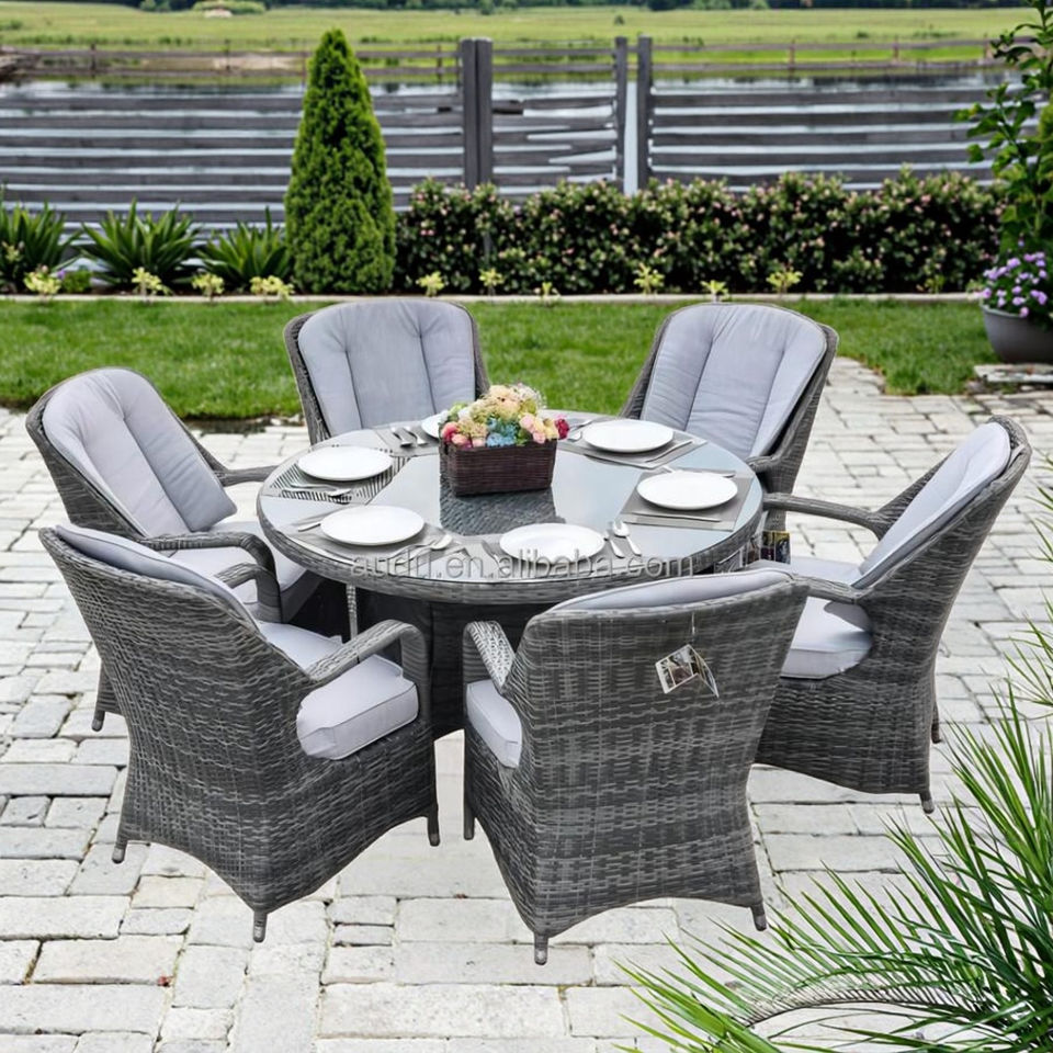 Ensemble de salle à manger rectangulaire Audu UK Grey Cannes en rotin pour 6 personnes