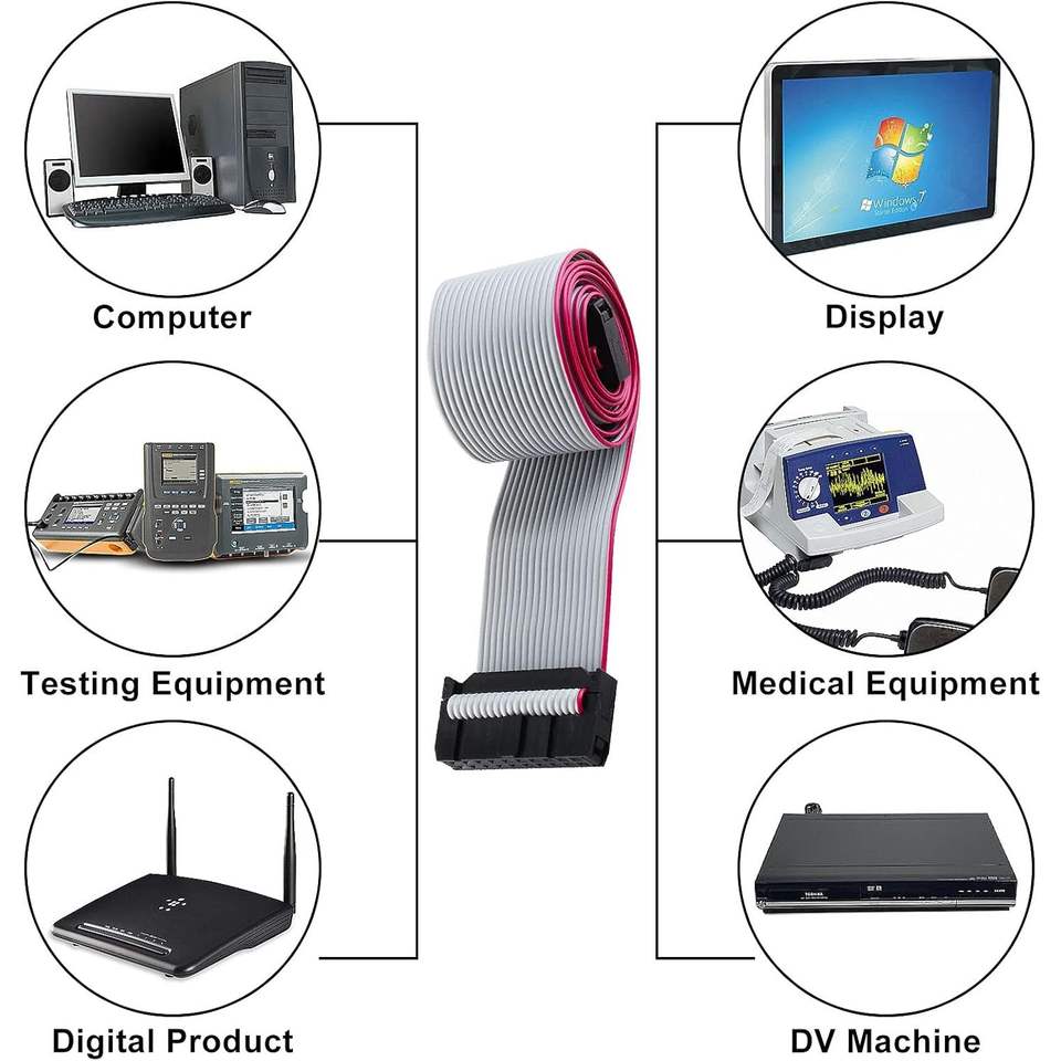 Câble plat Augiimor à 20 broches, pas de 2,54 mm, connecteur F-F IDC, pour écran d'ordinateur et équipement médical