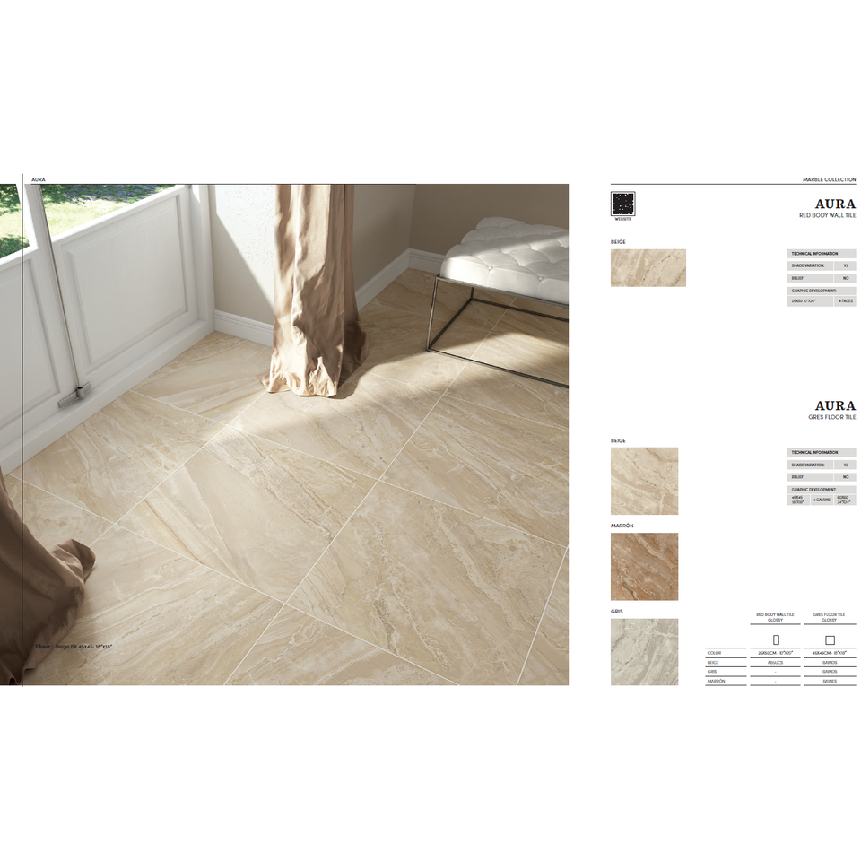 Aura Beige Marron 45x45 Ceramic Floor Tile Shining Wall Tile with Coordinated Models Spain Model C2432 Available in Other Sizes