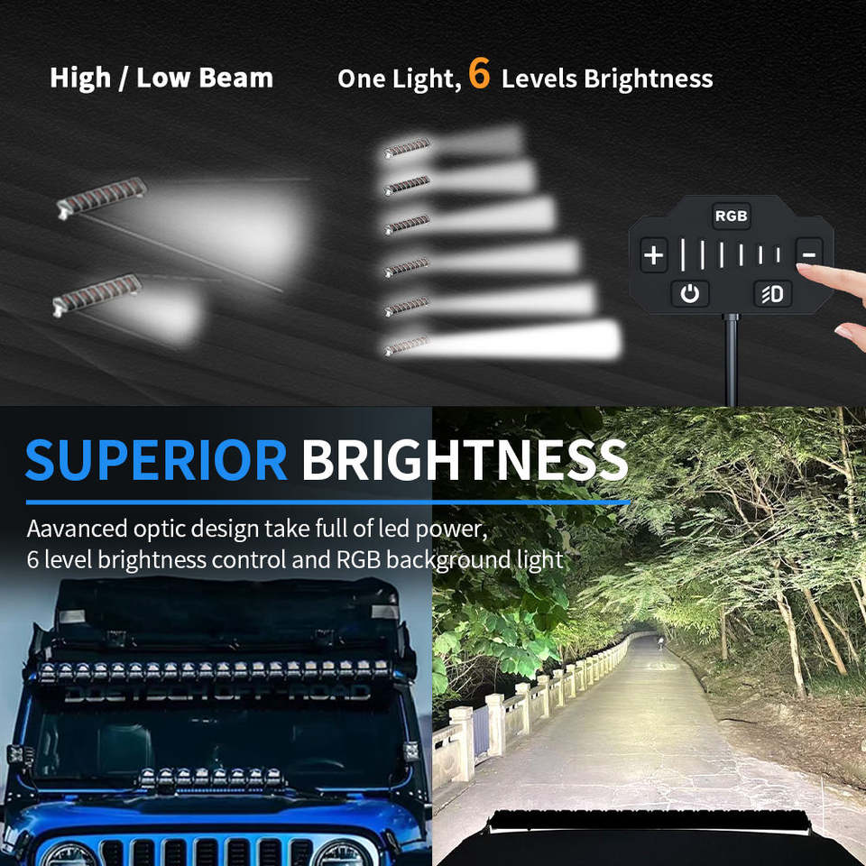 Faisceau lumineux:Feux de croisement/route, Spot/Flood, Intensité variable et RVB