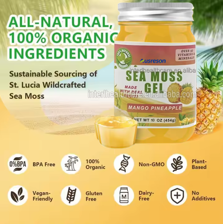 Gels de mousse de mer d'Ausreson Supplément de marque privée Vitamines pour mousse de mer d'Irlande Ananas Gel de mousse de mer en vrac biologique