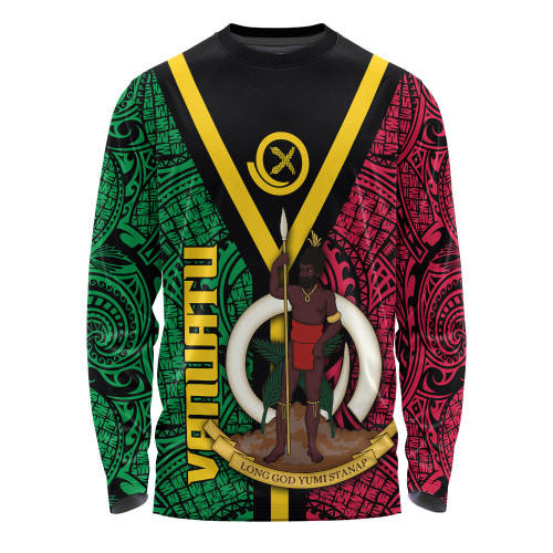 T-shirt à manches longues Australie Îles du Sud Pacifique Fidji avec motifs Tapa polynésiens et symbole du blason