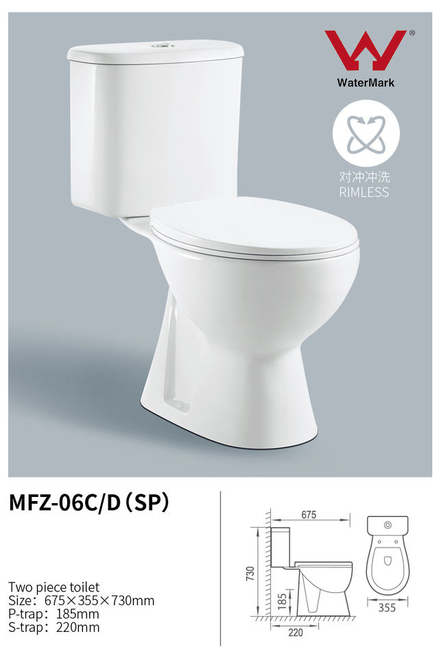 Two Piece Toilet Bowl P-trap S-Trap Rimless Wash Down Sanitary Ware Water Closet Dual Flush Sanitaryware