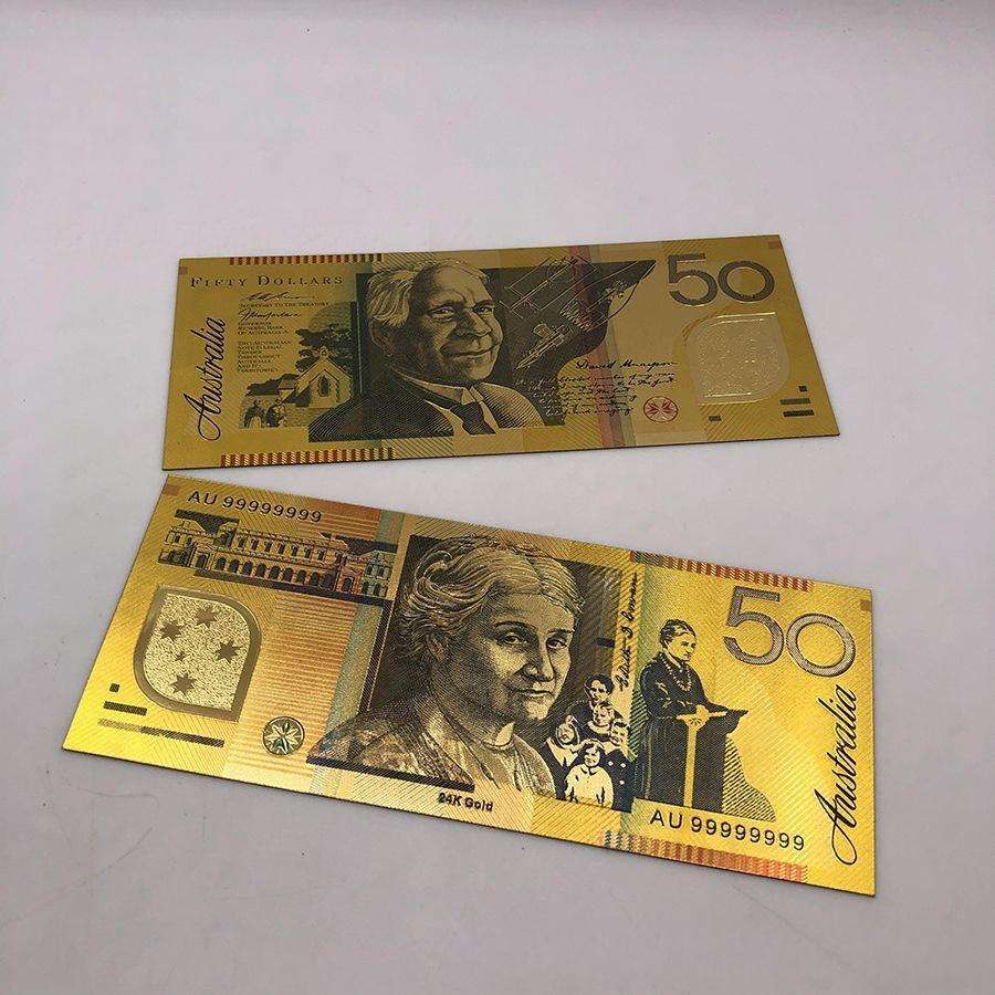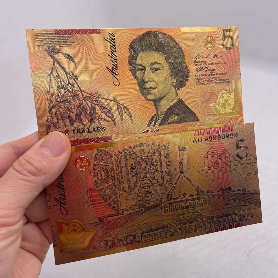Billets de banque australiens plaqués or, billets de banque en feuille d'or avec motif gravé, imprimés numériquement pour les cadeaux de fête