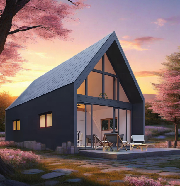 Structure en bois préfabriquée en forme de A, de haute qualité, imperméable, conçue en Australie, maison triangulaire durable, villa, resort