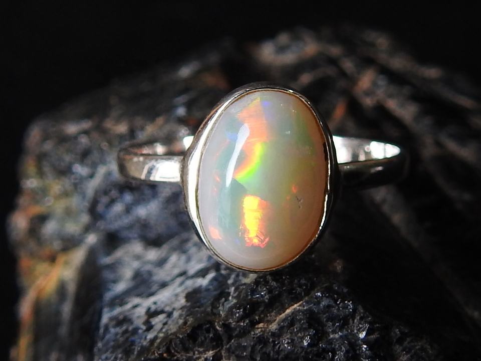 Australian Multi Fire Opal Wedding Ring-Silver-October Birthstone-Solid Opal-6.5 US Size-Handmade Classic Prong Setting Jewelry