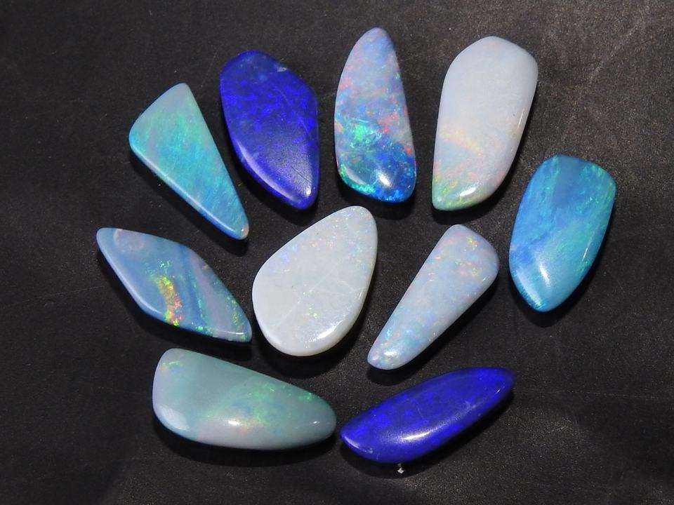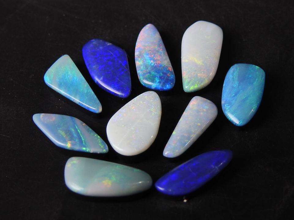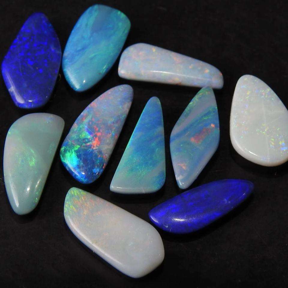Opale Naturelle Fantaisie Australienne Doublette Multi-Éclats de Feu Certifiée 15 Carats Lot de 10 Pièces 11 à 12 MM de Longueur Environ, Vente en Gros