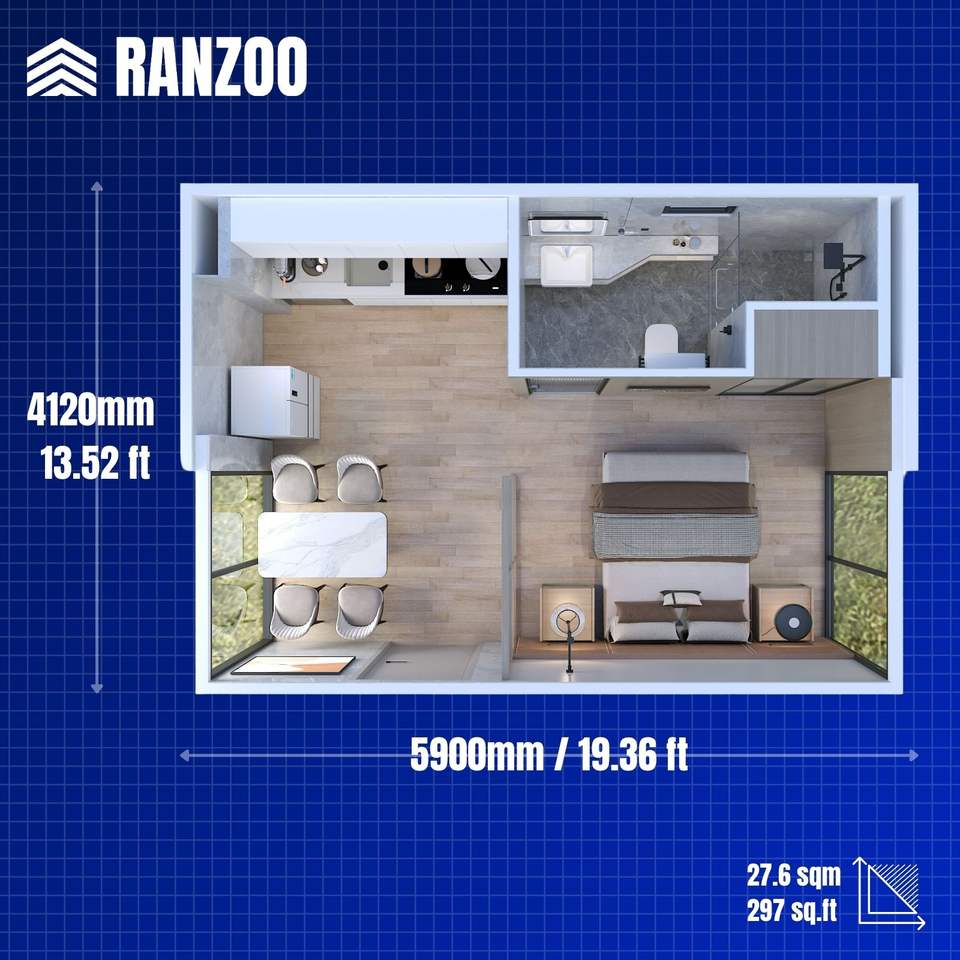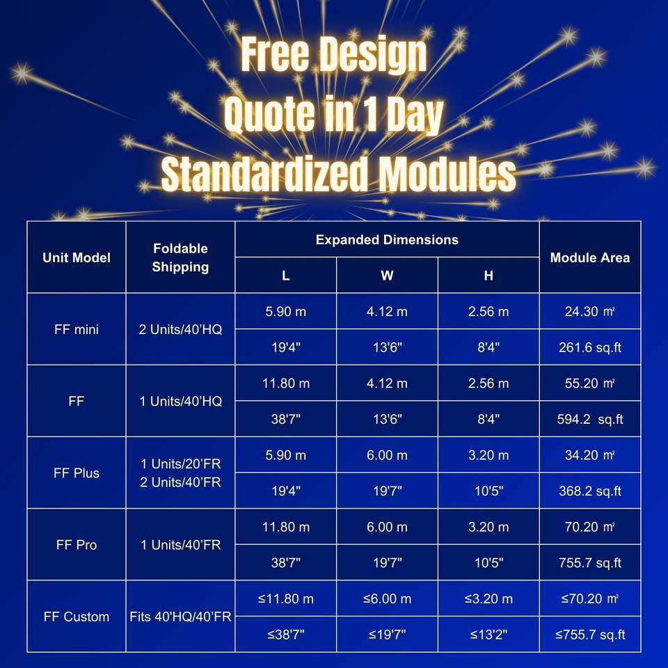 Dimensions du module (métrique):5.90m (L) * 4.12m (W) * 2.58m (H)