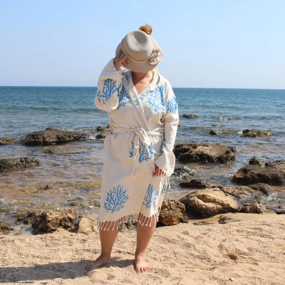 Autantic Peignoir Femme Séchage Rapide Coton Manches Longues Coloré Doux Robe De Chambre Capuche Turc Bornose Pagne À Capuche