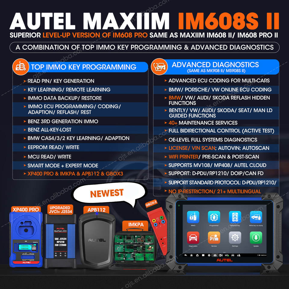 Boutique officielle Autel MaxiIM IM608S II Scanner Autel MaxiIM IM608 PRO 2 Outils de programmation de clés de voiture Altar IM 608 Mise à niveau de l'IM608
