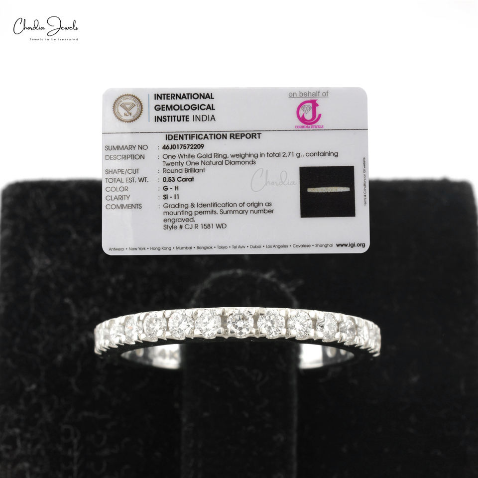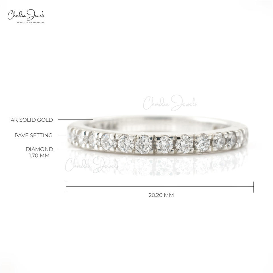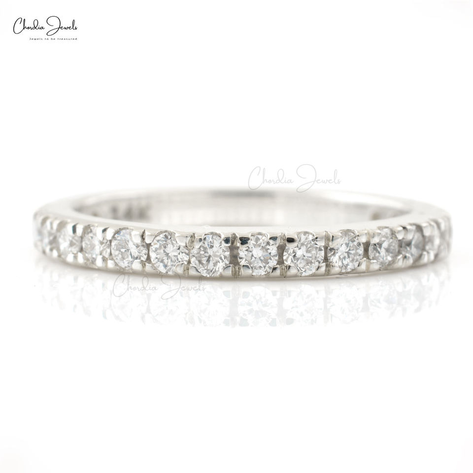 Bague de mariage demi-éternité authentique en or blanc 14 carats avec diamants G-H taille ronde de 1,70 mm pour femme, bijoux de luxe à prix d'usine