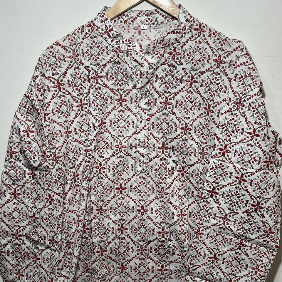 Kurta authentique 100% coton multicolore à manches longues pour hommes | Imprimé à la main, motif floral, style indien intemporel