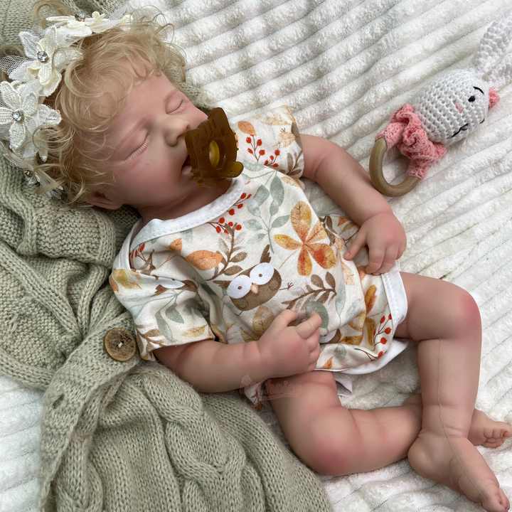 Poupée Reborn Authentique en Silicone Plein Corps de 20 Pouces, Bouche Ouverte avec Sucette, Modèle Endormi, Jouet Doux pour l'Éducation des Nouveau-nés