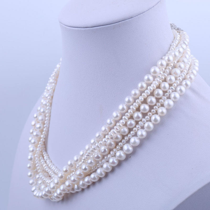 Collier authentique en perles d'eau douce rondes de 3 à 6 mm pour femmes, élégant et polyvalent, double chaîne avec chaîne de clavicule