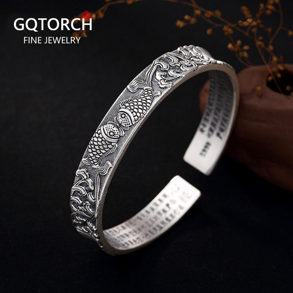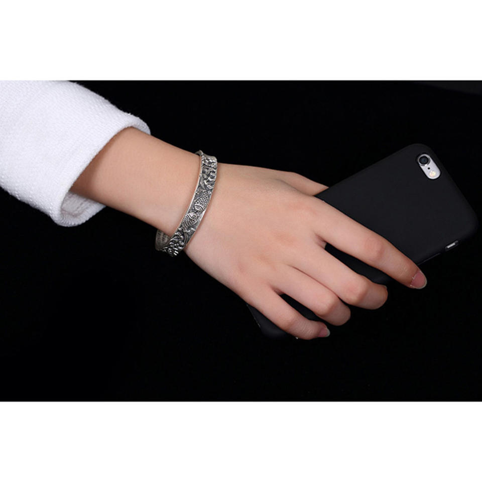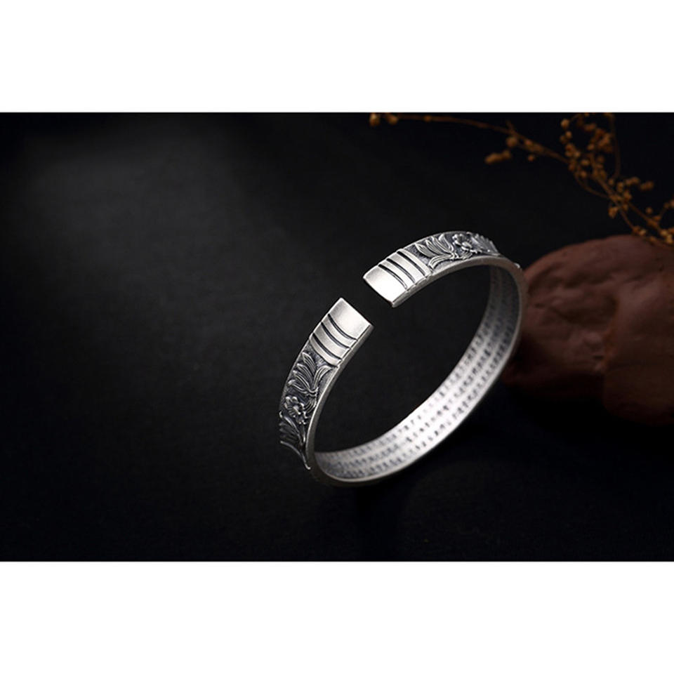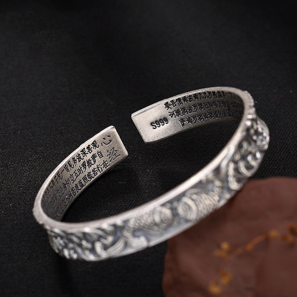 Bracelets en argent pur 999 authentiques pour femmes, larges bracelets en argent pur 999, Prajna Paramita Sutra Bouddha, bijoux tibétains