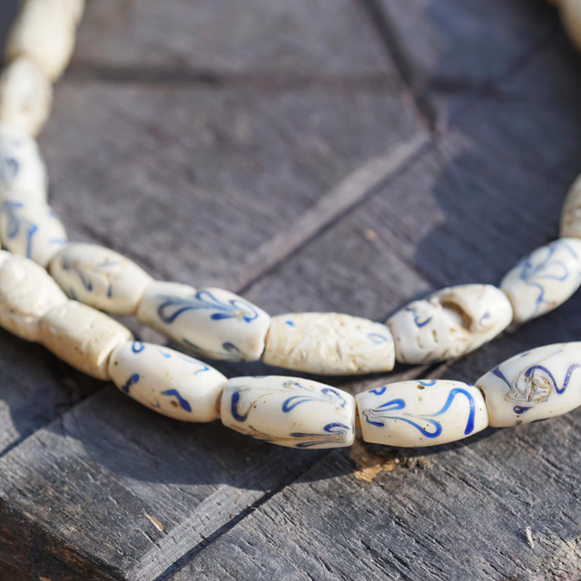 Authentic African Ghana Glass Beads Old Venetian White Flower Design Wholesale Bulk Purchase Crystal Lampwork Tribal Trade Beads