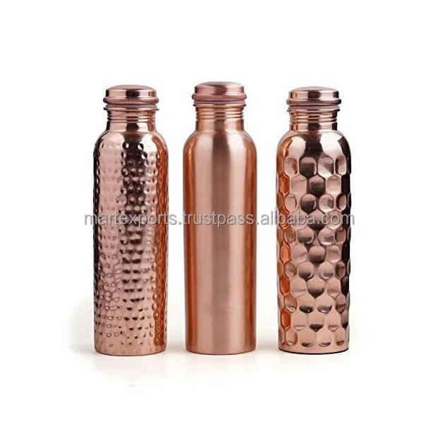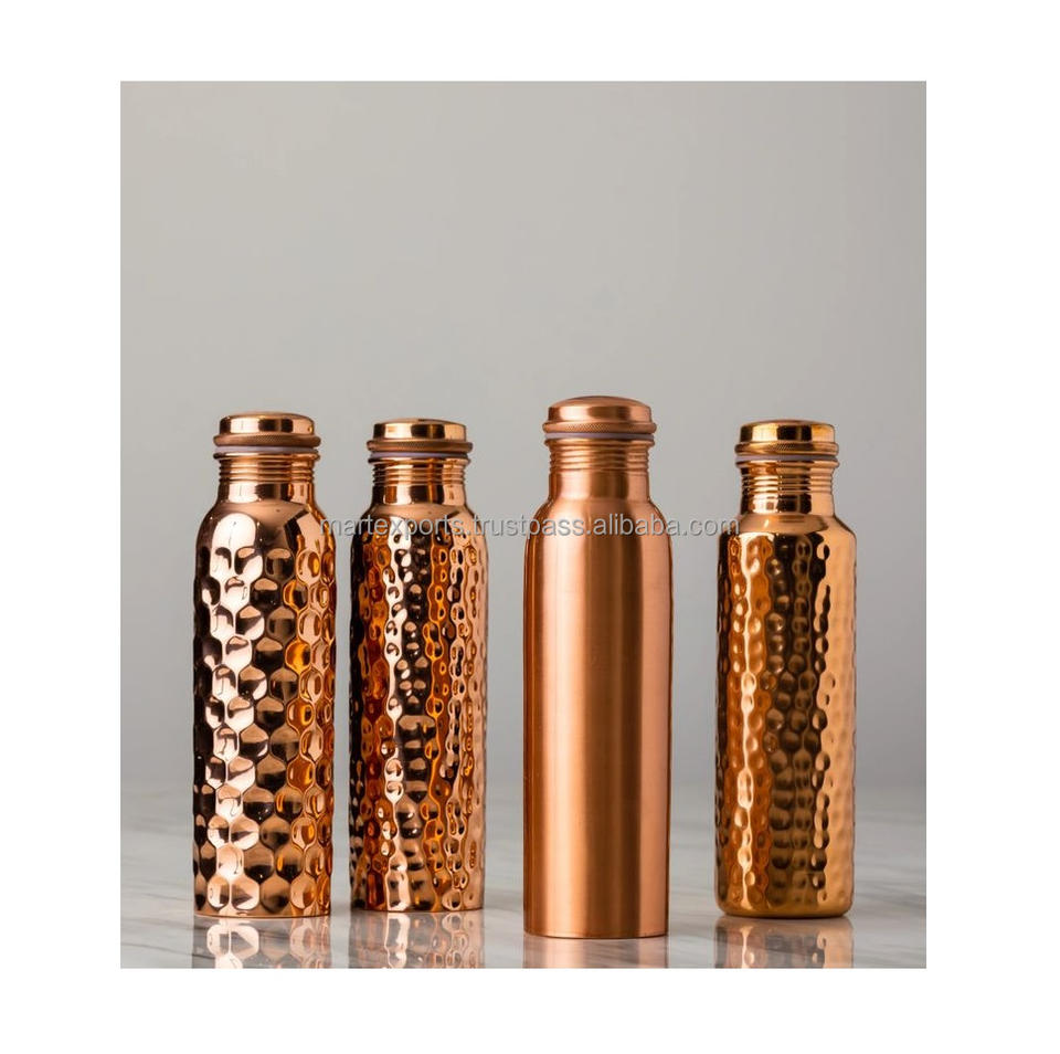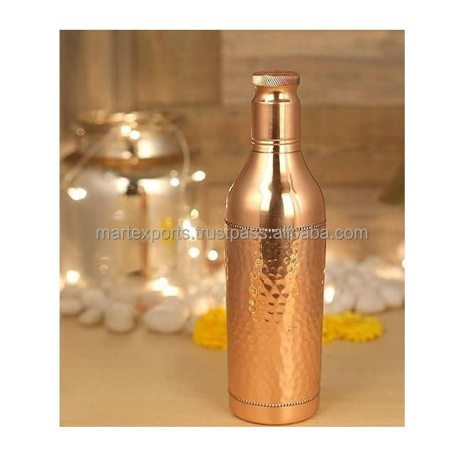 Bouteille en cuivre authentique ayurvédique et écologique pour une hydratation pure et un bien-être, compatible avec l'eau bouillante et à usage unisexe
