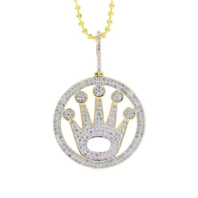 Pendentif Moissanite authentique en forme de couronne, serti clos, en argent sterling 925, unisexe, bijoux de fête Hip Hop