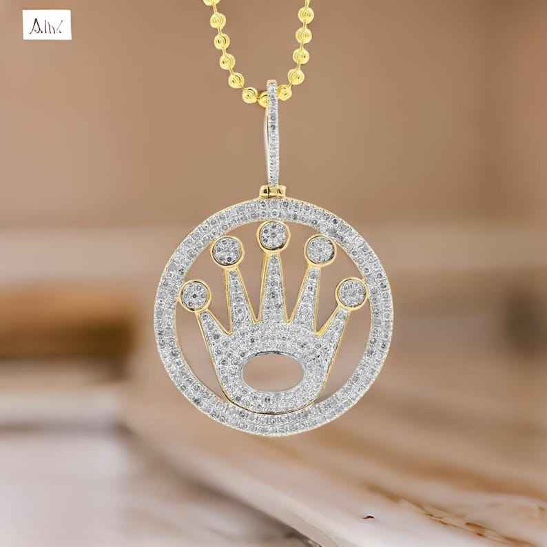 Design: Pendentif en diamant Moissanite de coupe ronde avec breloque couronne