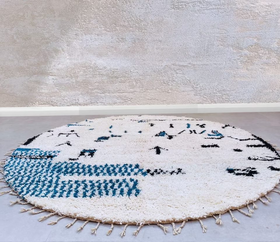 Beni Ourainn-Tapis Marocain Authentique Personnalisé en Laine Fait à la Main, Véritable Berbère Tressé Antidérapant Lavable Toutes Saisons pour la Cuisine