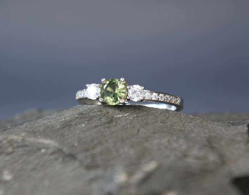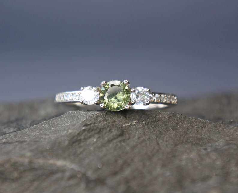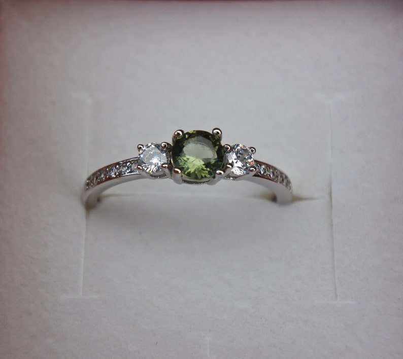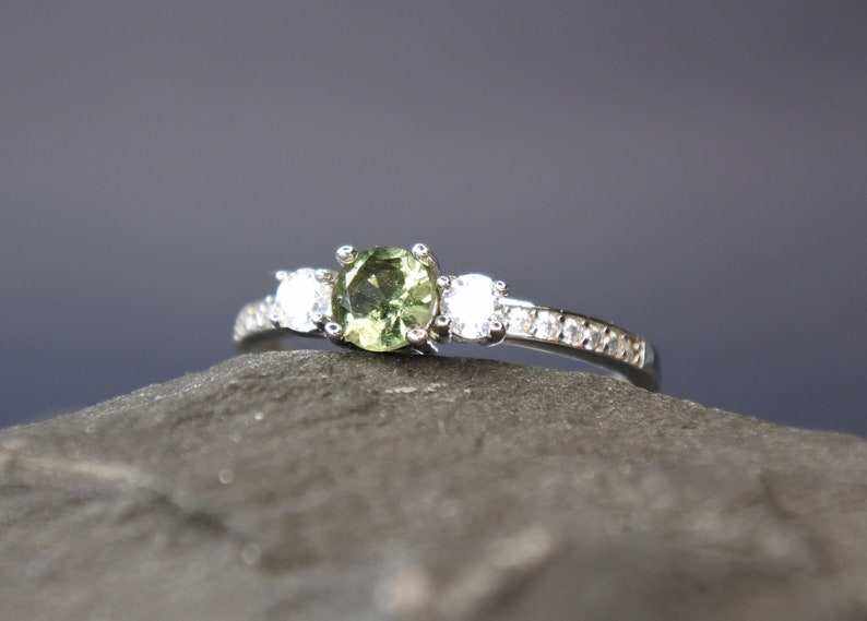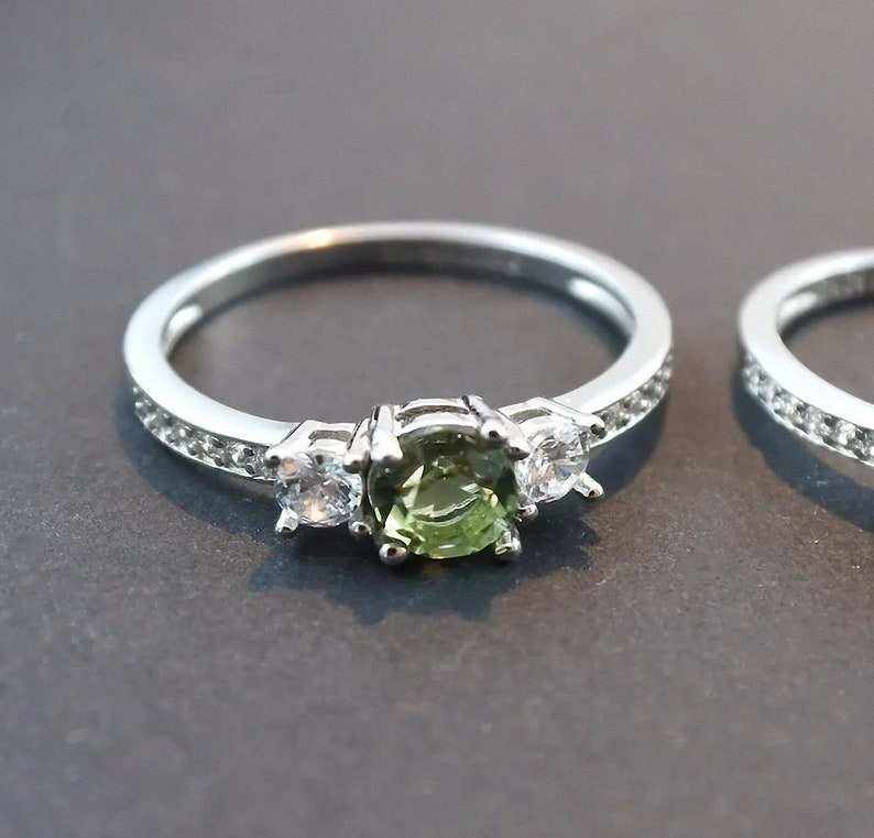 Bague Moldavite Tchèque Authentique Pierre 5mm en Argent Sterling Certifiée pour Bijoux de Mariage