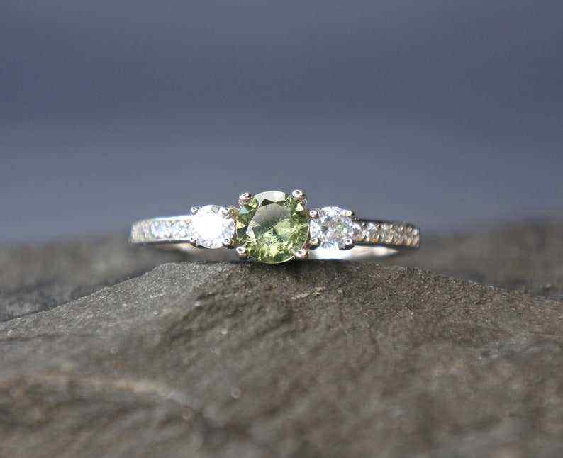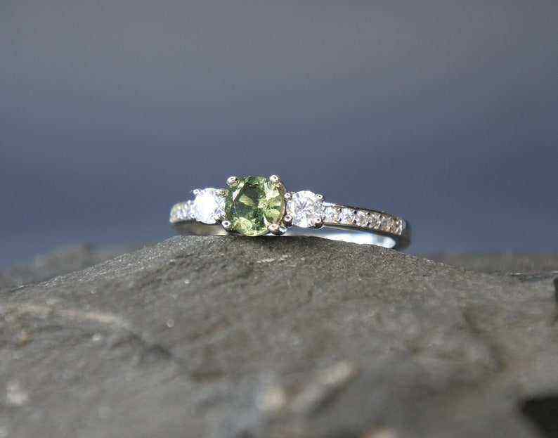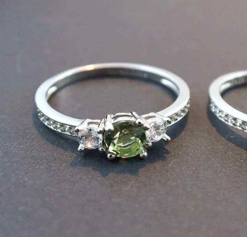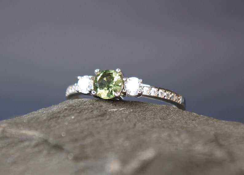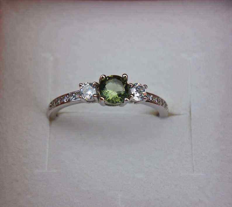 Authentique bague moldavite tchèque 5mm pierre bijoux de mariage certifiés en argent sterling pour elle