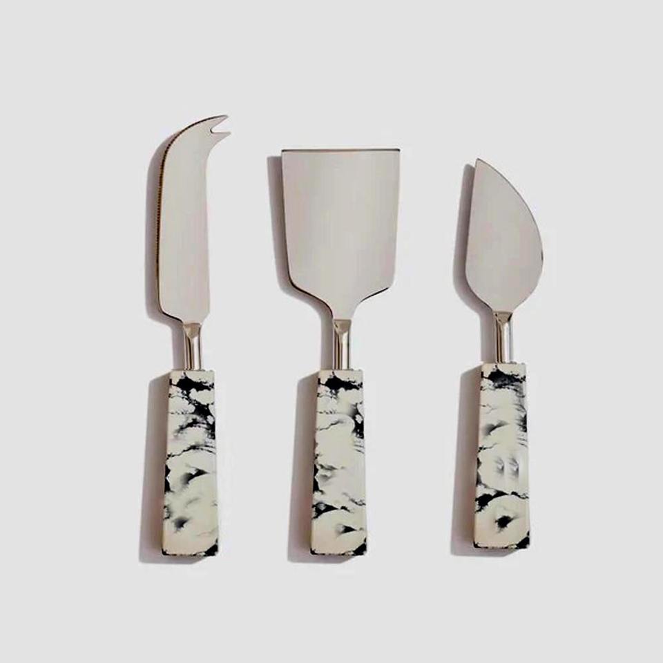 Trancheuse à fromage en acier inoxydable plaqué or, manche en résine de teinte foncée authentique, épandeur de fromage en argenterie