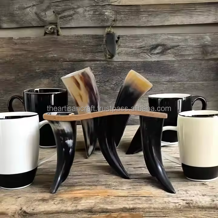 Product Name:Drinking Horn with wood stand