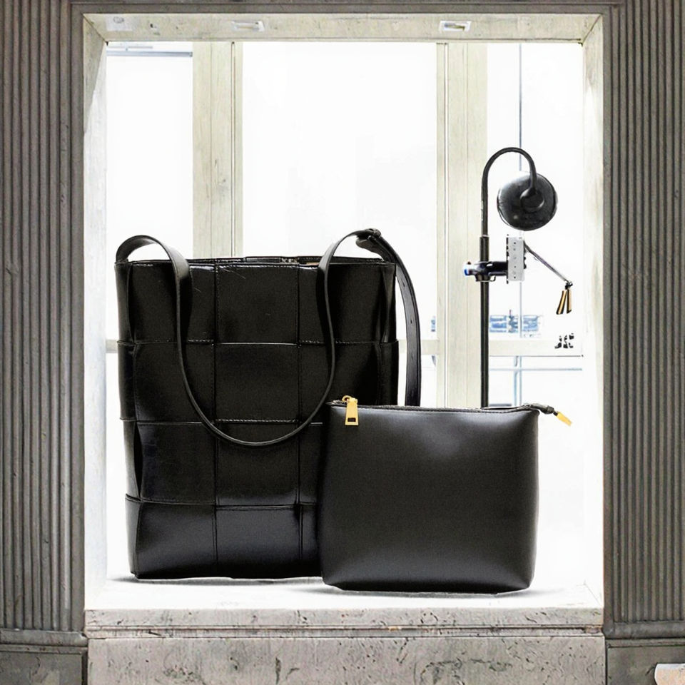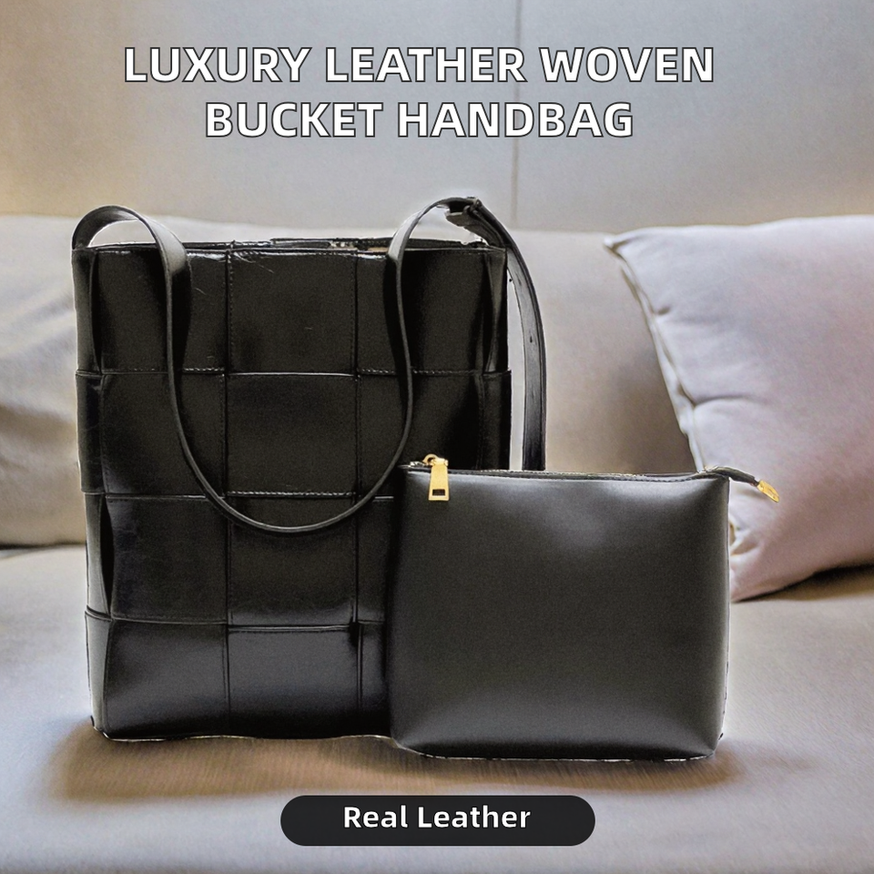 Sac seau tissé en cuir véritable authentique, grande capacité, doublure en toile, pour femme, luxe, tendance