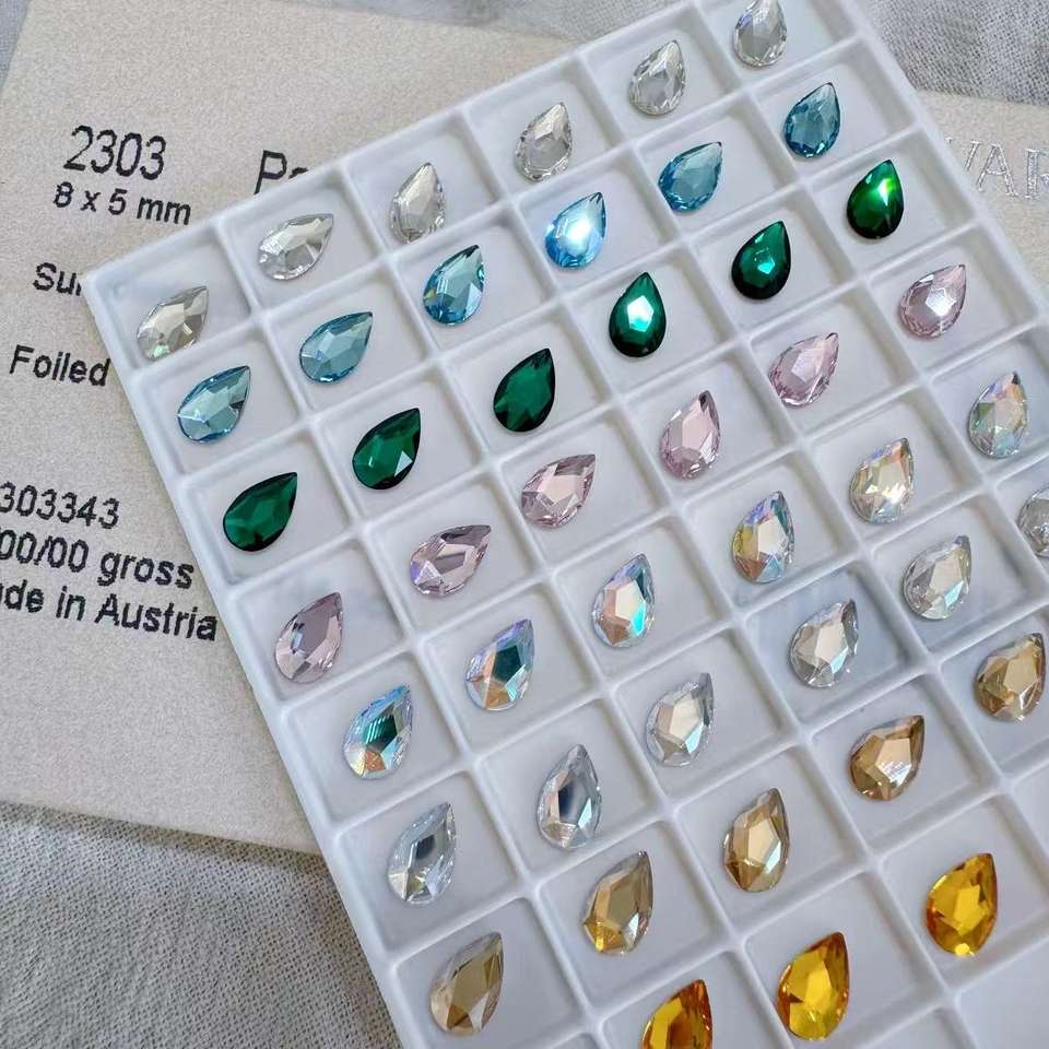 Strass en verre autentique 2303, forme poire, à dos plat, thermocollants, fabriqués en Autriche, pour sacs à main tendance et sacs à la mode, produit transfrontalier très prisé