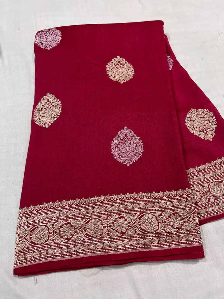 Sari en soie Tassar Georgette Kadhwan 100% pur, tissé à la main, avec tissage Sona Rupa Buta, sari traditionnel indien pour mariage