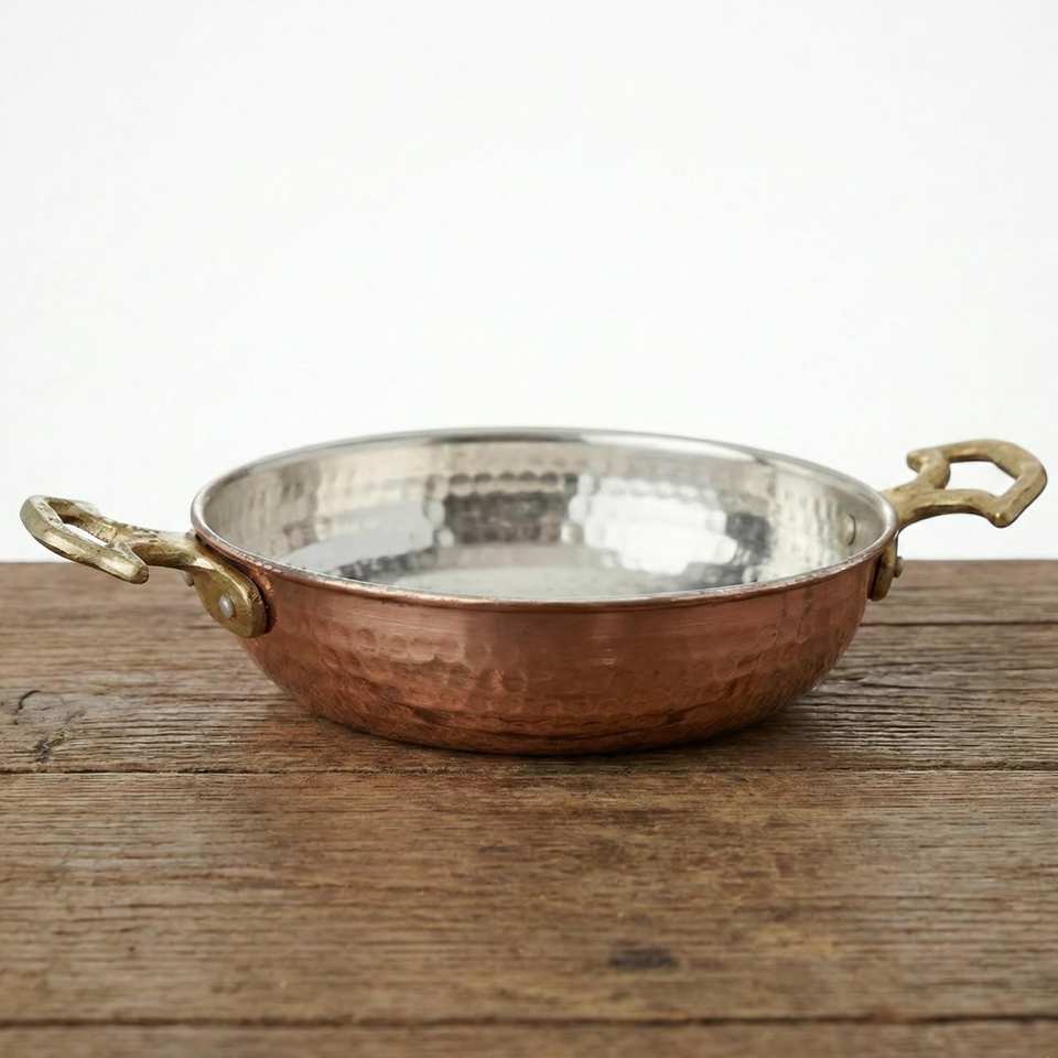 Poêle en cuivre authentique faite à la main avec poignée en laiton, poêle à frire martelée pour la cuisine domestique, hôtelière et le service élégant