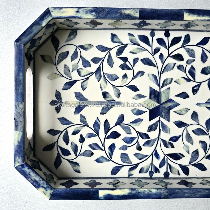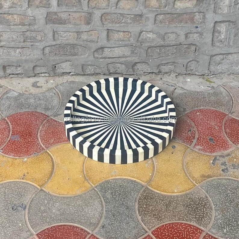 Plateau artisanal authentique en os indien écologique, thème bouddhiste, design unique en marbre, bois poli, artisanat de table pour la maison