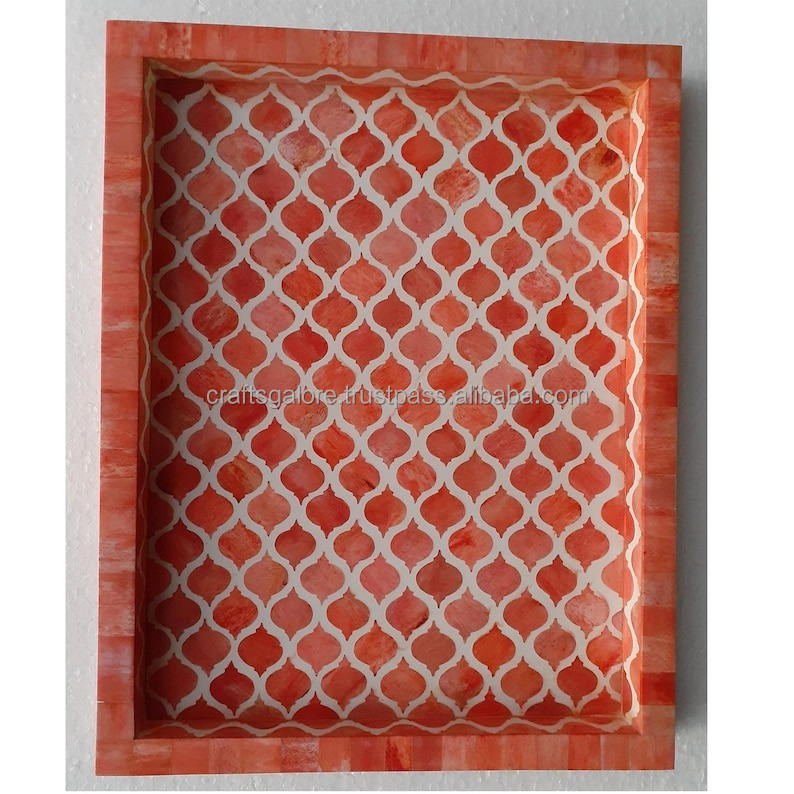 Plateau décoratif en bois indien poli, fait à la main, écologique, pour une utilisation élégante à la maison et au bureau