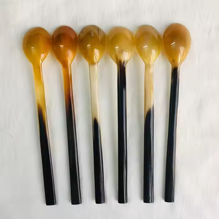 Cuillère à corne authentique, parfaite pour les repas rustiques.