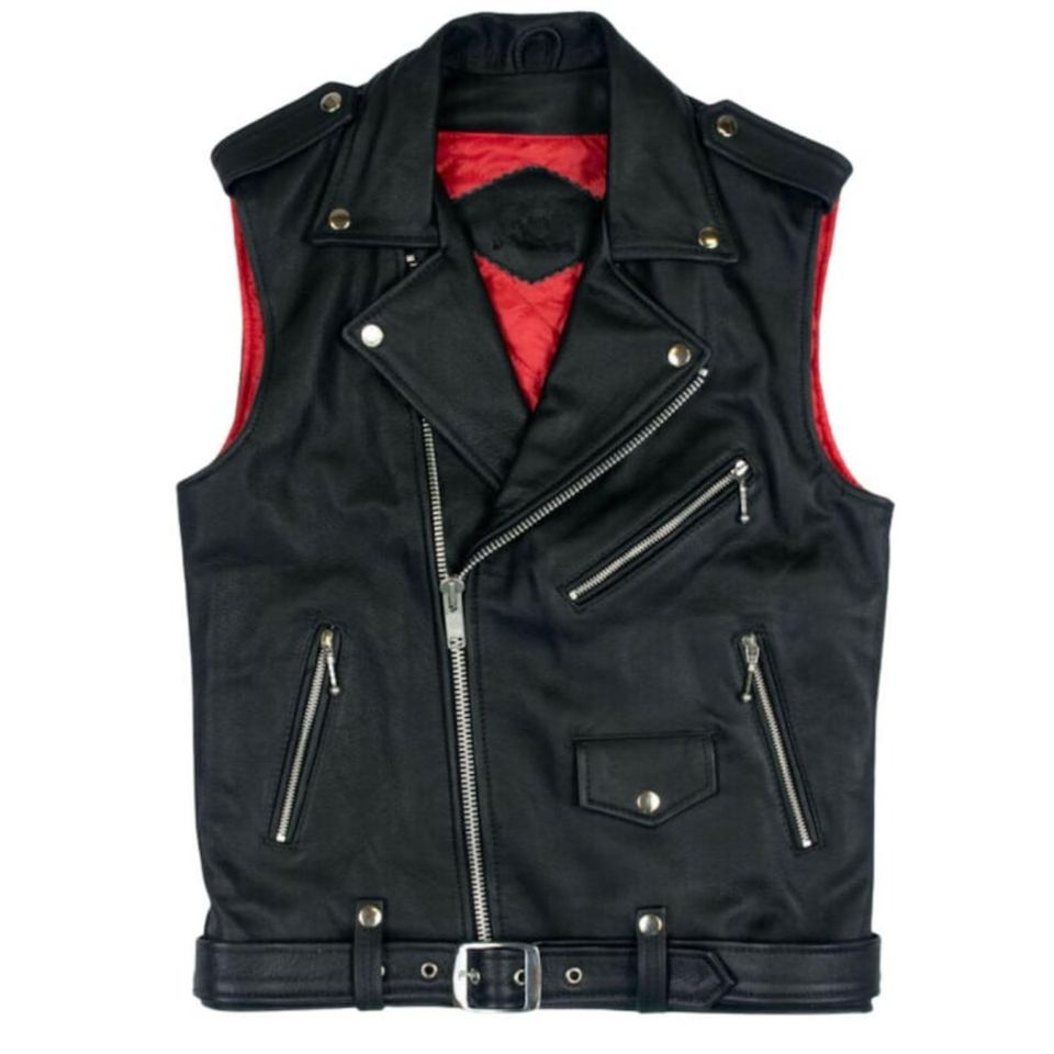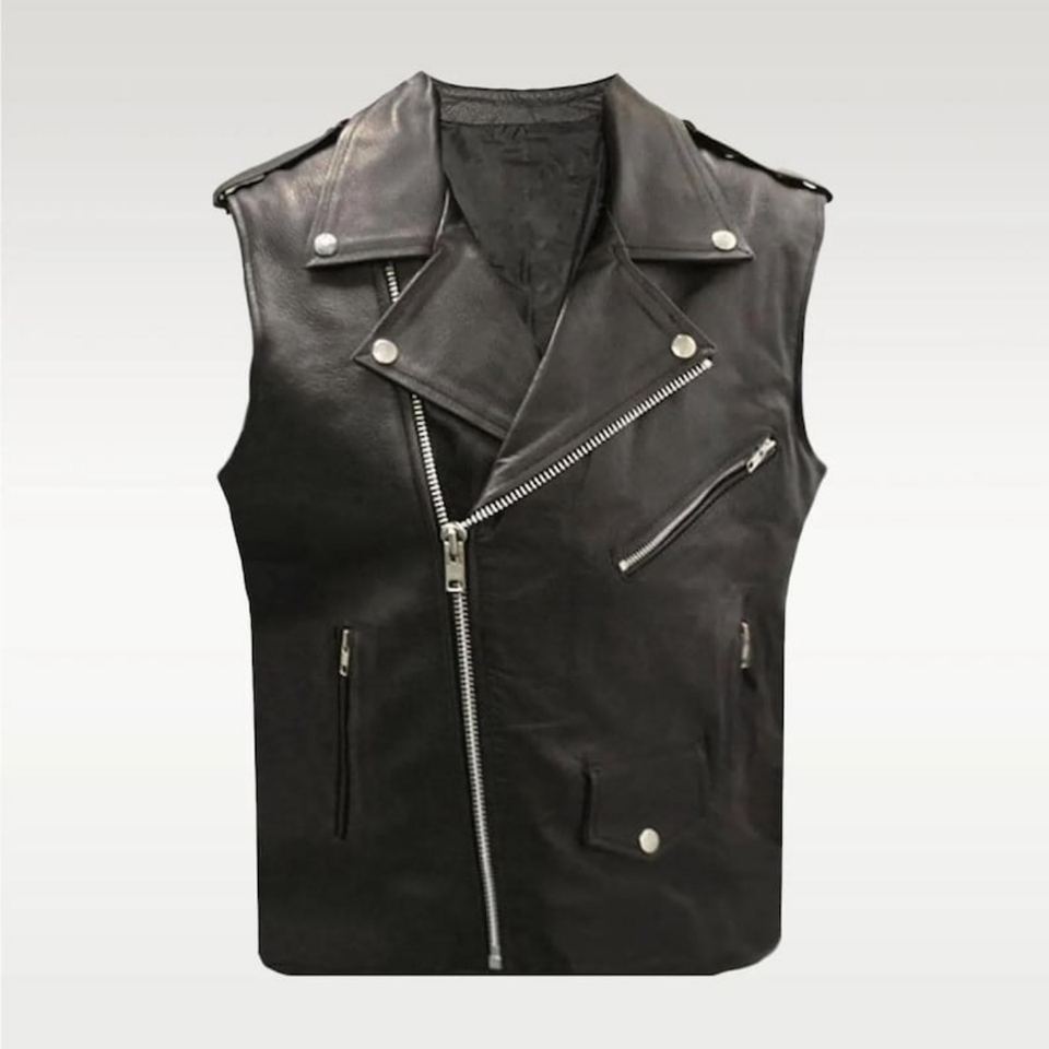 Gilet de motard en cuir véritable conçu pour les hommes qui préfèrent un style de conduite traditionnel avec durabilité et un style minimaliste propre