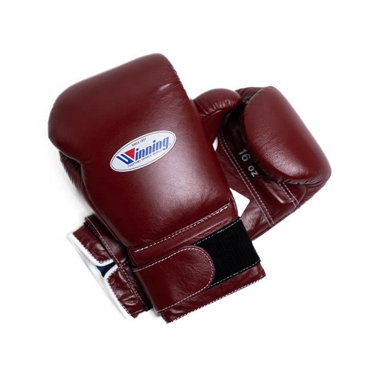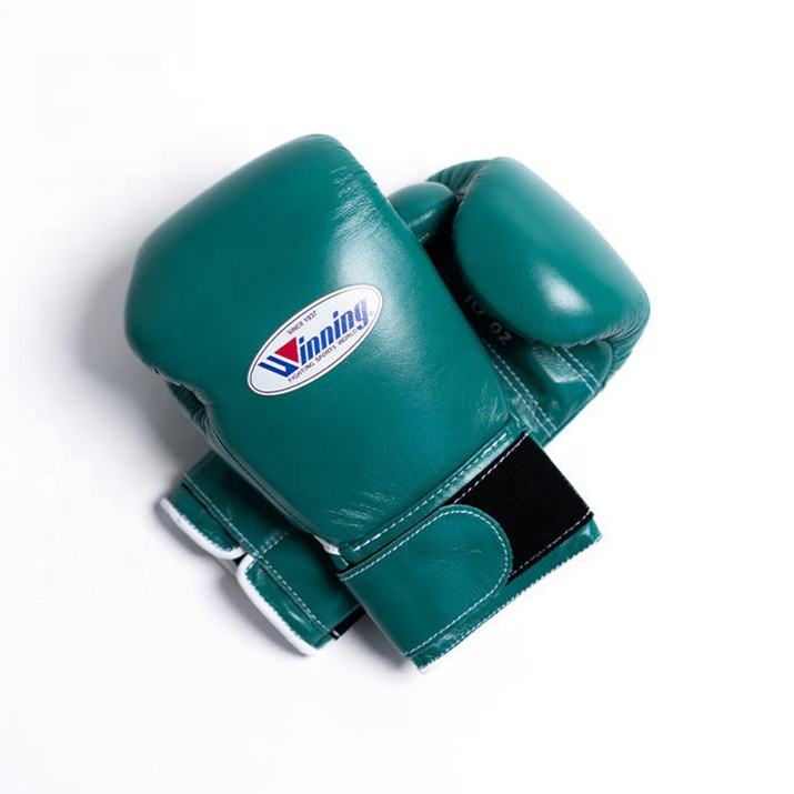 Gants de compétition en cuir authentique flambant neufs avec sangle gagnante Gants de boxe professionnelle Muay Thai MMA avec logo personnalisé