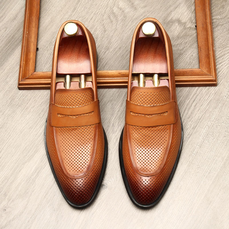 Chaussures à enfiler en cuir véritable avec sangle réglable et soutien de la voûte plantaire, bout pointu, décontractées et habillées pour hommes